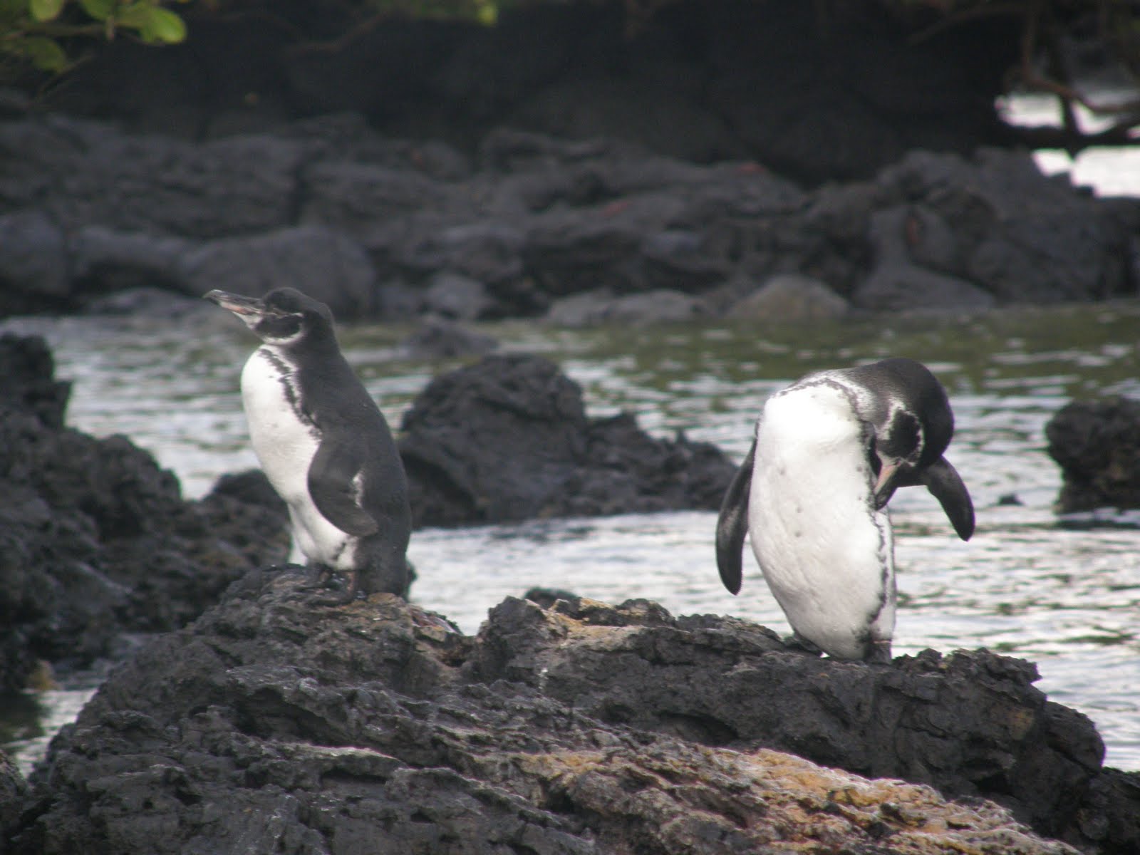 The pictures of the penguins, blue-footed boobies, and the marine iguanas are from the little island across from the anchorage. It was an early morning adventure along the trail and along the coast of the island; the tour boats arrived just after we left and we managed to not get into trouble. Yay! The turtles at the center just outside of town are amazing, quite proficient at showing just how slowed down one can get. The biggest of the females definitely run away as fast as they can when they see the big guys coming for them. We caught the early morning sex sessions and it did not look like very much fun! Glad I am not a tortoise! The last photo is the one taken from Kelita's camera which did survive our calamity out at Tunnels. We all look quite happy and we were.......very thankful to be alive and rescued. The panga in the background ended upright and wedged into a rock, with the help of us all. What you cannot see are the huge meat-eating horseflies who could not resist all of our fresh tantalizing bodies, even with rash guards on. YIKES! Like we needed to be eaten alive after surviving the capsizing panga We are on our way to the Marquesas this afternoon and will take with us lots of fresh veggies and fruits from the farm we visited, and wonderful memories of an exotic Galapagos journey. Love to all! Suzi